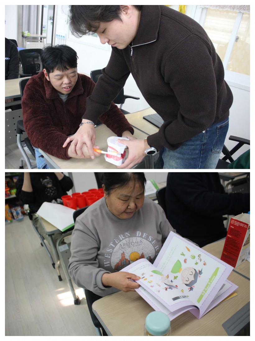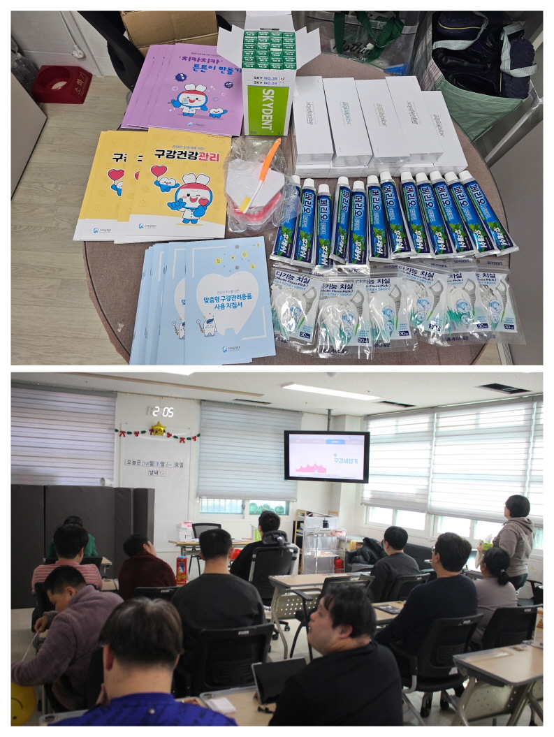 또한 스마일재단에서 제공해 준 구강관리용품 세트는 이용인들의 일상 속 필수 아이템으로 자리 잡아 칫솔, 치약, 구강관리 도구를 각자 생활 속에서 직접 사용해 보며, 스스로 구강건강을 챙기는 습관이 조금씩 자리 잡아가는 모습이 매우 인상적이었습니다.