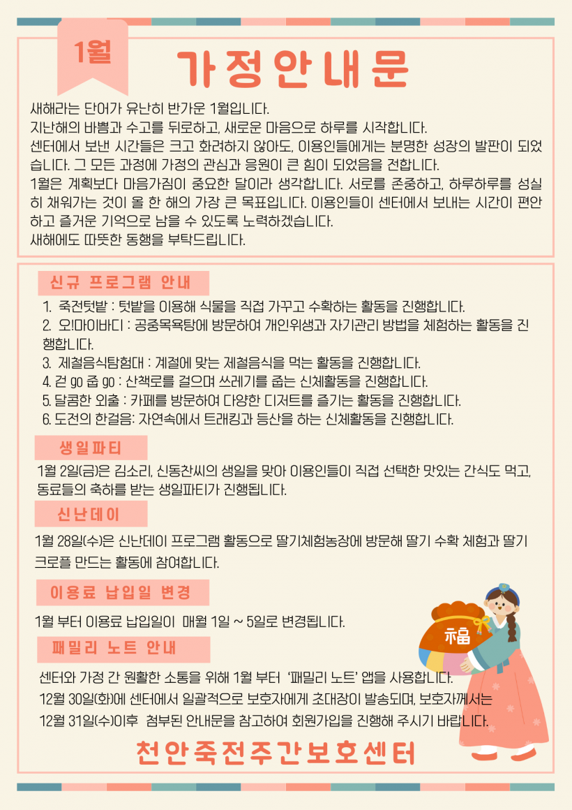 2026년 1월 가정안내문 페이지 정보 작성자 김미리 작성일26-01-05 14:44 조회266회 댓글0건 이전글 다음글 목록 본문 2026년 1월 가정안내문 입니다. 댓글목록 등록된 댓글이 없습니다. 이전글 다음글 목록