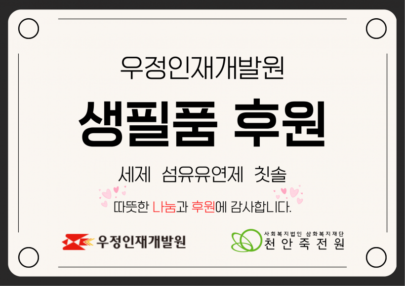이런 따뜻한 나눔과 관심, 사랑이 저희 천안죽전원 가족분들이 생활하시는 데 큰 힘이 되시는 것 같습니다.
