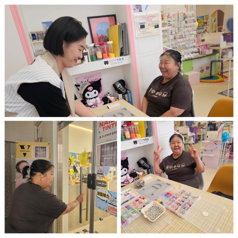 또한, 여가시간에 활용할 수 있도록 원하는 비즈공예 재료를 직접 구입해보는 활동도 함께 진행되었습니다. 스스로 선택한 재료들을 손에 쥐고 기뻐하는 모습에서 앞으로의 즐거운 여가생활이 기대되었습니다.
